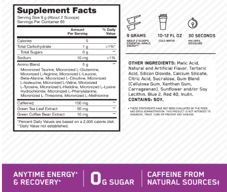 Es la versión de alto rendimiento de la fórmula líder de Optimum Nutrition. Combina una matriz de aminoácidos micronizados con cafeína de fuentes naturales (té verde y café verde). Esta presentación de 65 servicios es la opción más inteligente en MEGAPEOPLE para quienes buscan un suministro constante de energía limpia y recuperación muscular en Santander.