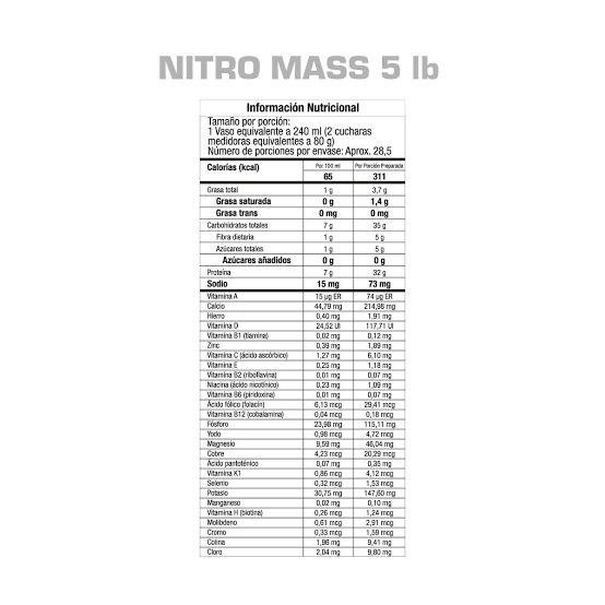 Nitro mass 5 lbs cantidad